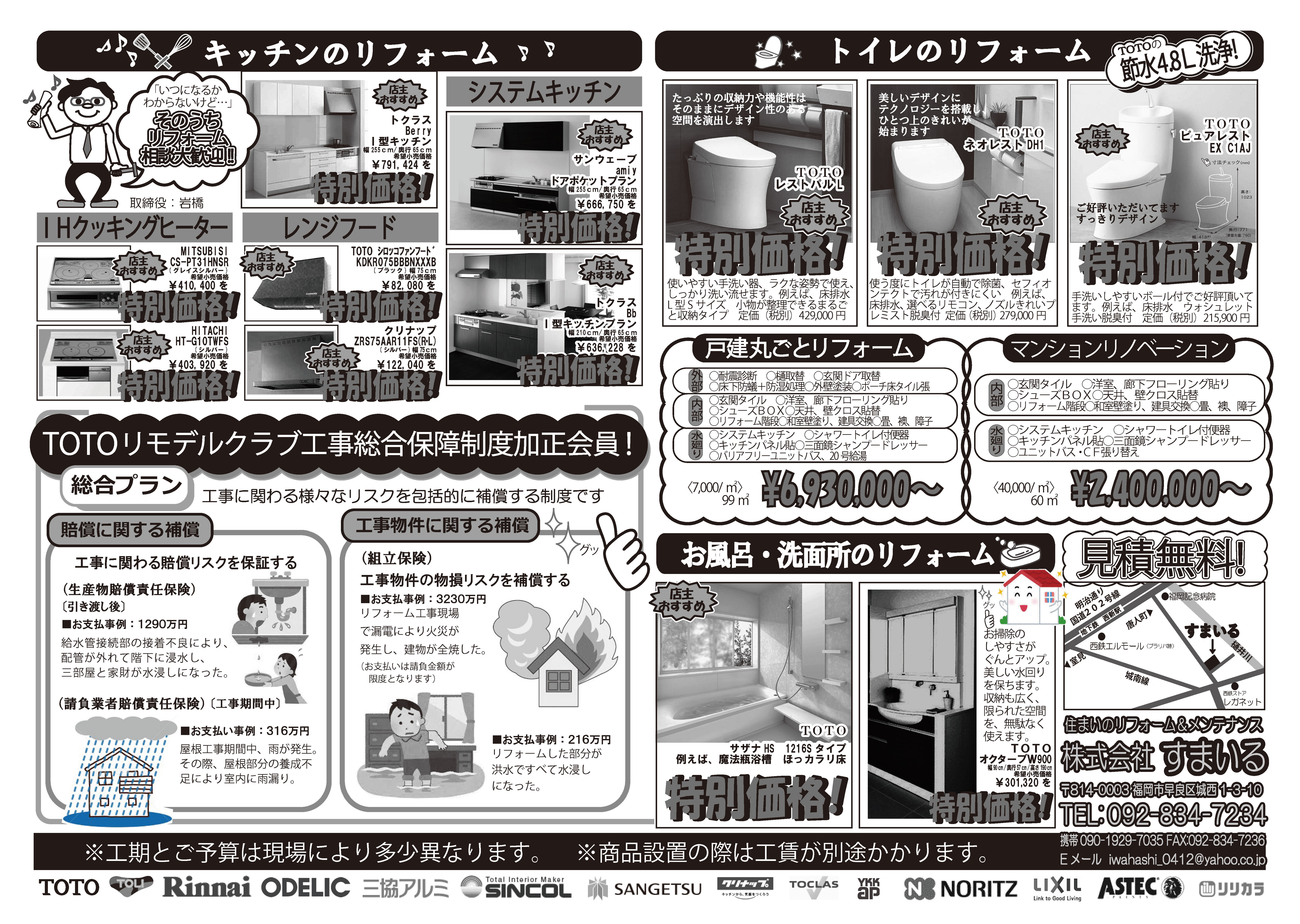 工事期間中及びリフォーム後の10年間の間に工事に関する水漏れ等の不具合が発生した場合は責任を持って補償致します。